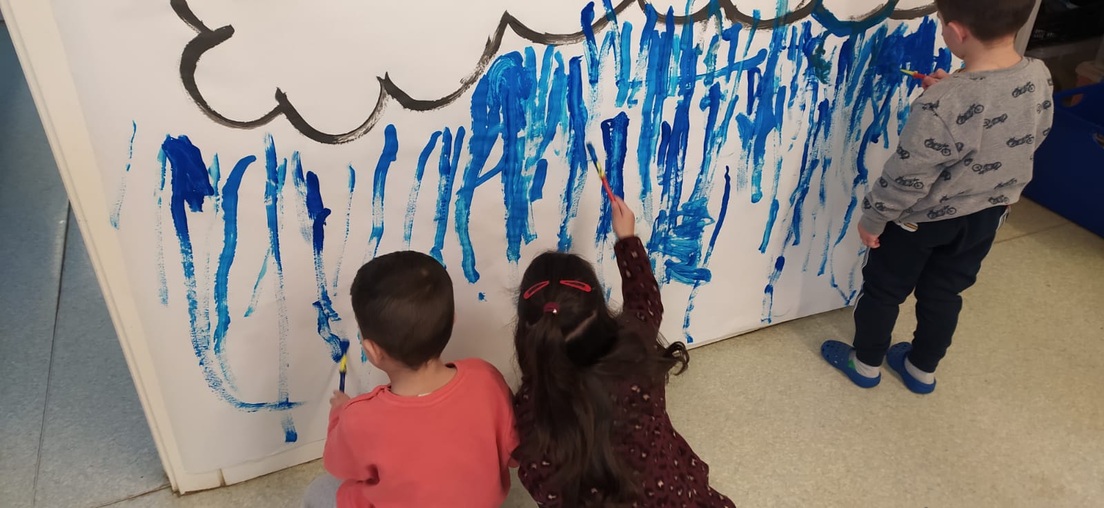 P3 practica el traç vertical Feu un comentari / Per admin / 29 de gener de 2020 / General I3 Infantil Portada / Educació infantil, Escriptura, Traç Com que aquests dies ha plogut molt, els nens i les nenes de P3 hem aprofitat per introduir el traç vertical, tot simulant la pluja. Mireu quin mural més bonic ens ha quedat!!!