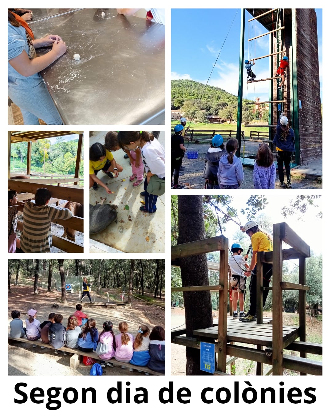 Segon dia de colònies Feu un comentari / Per admin / 27 d'octubre de 2025 / 1r 3r 5è Esport General Metodologia Portada Primària Sortides Avui és el segon dia de colònies per a 3r i 5è, i s’hi ha afegit 1r! 🎒Hem gaudit d’un dia ple d’aventures: tir amb arc, tirolina, visita a la granja, escalada cooperativa i galetes boníssimes! 🍪💪Seguim vivint experiències inoblidables! 🌿✨
