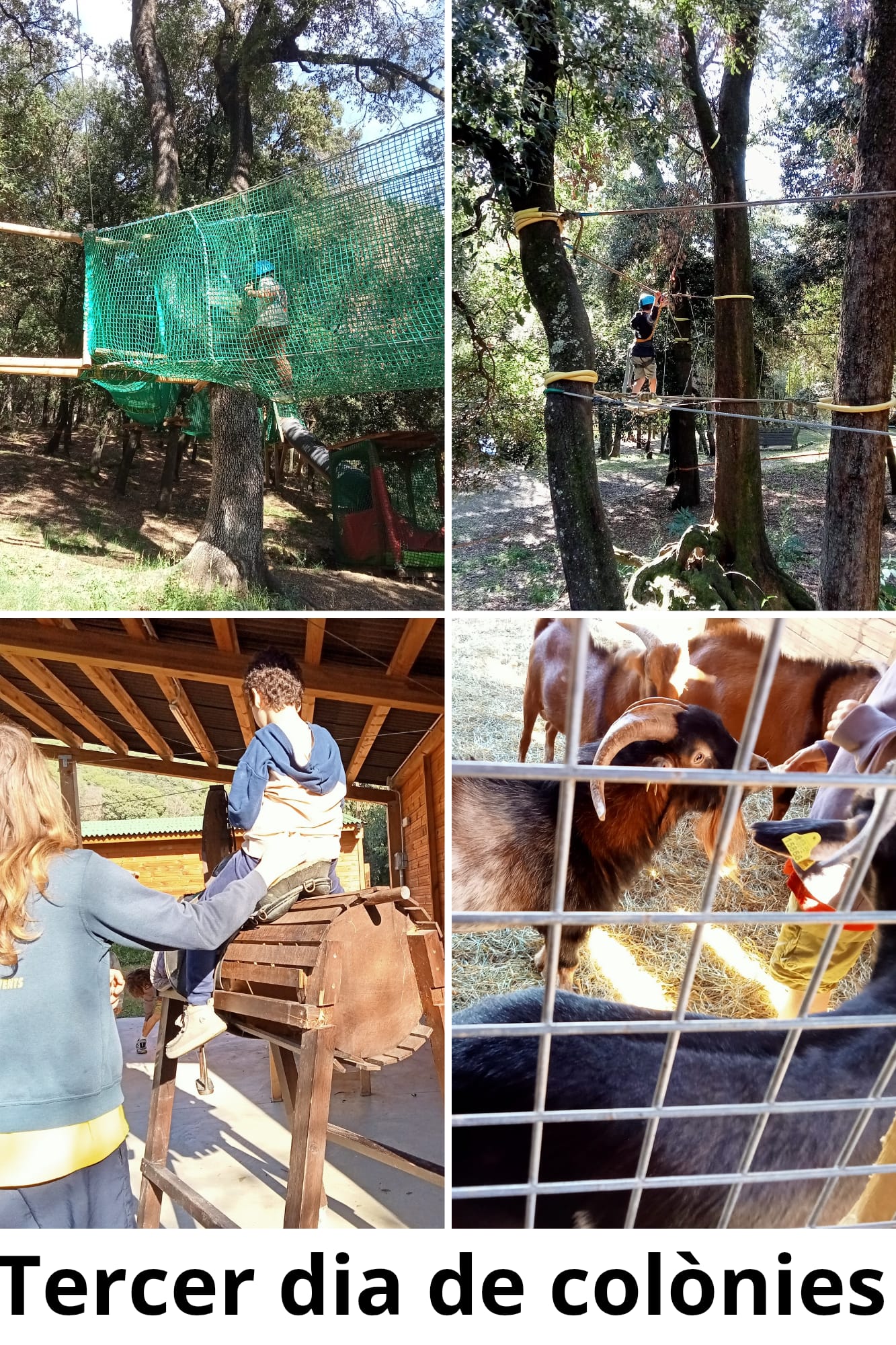 Seguim gaudint d’un munt d’activitats engrescadores: visita a la granja, tirolines, bosc vertical i moltes més aventures! 🌳🐔