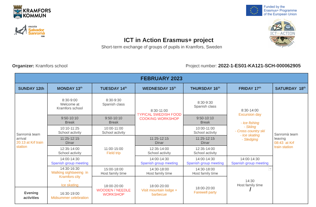La nostra mobilitat física a l’escola de Kramfors es va dur a terme de dilluns 13 a divendres 17 de febrer de 2023. Durant la setmana vam dur a terme diverses activitats diferents.