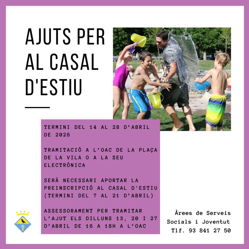 La convocatòria d’ajuts econòmics per a la inscripció del Casal d’Estiu Municipal 2026 s’obre del 14 al 27 d’abril