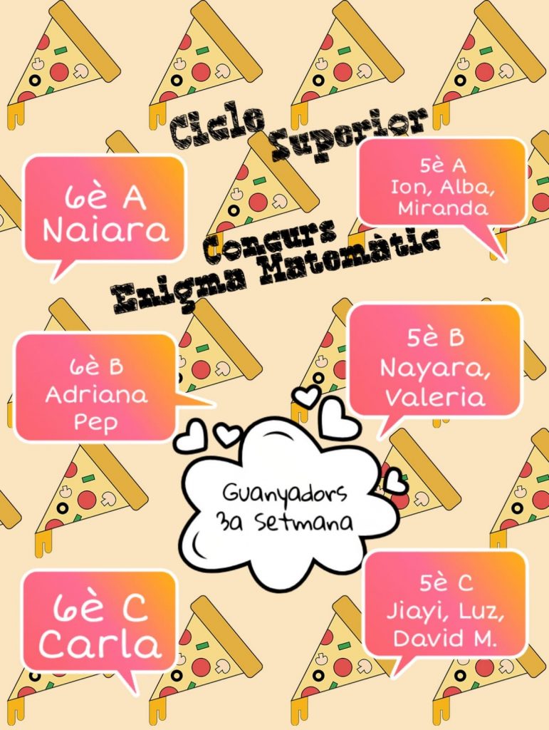 Els nens i nenes del Cicle Superior s’acomiaden del Concurs d’Enigmes Matemàtics!! Aquí teniu els darrers guanyadors/es de la 7a setmana.