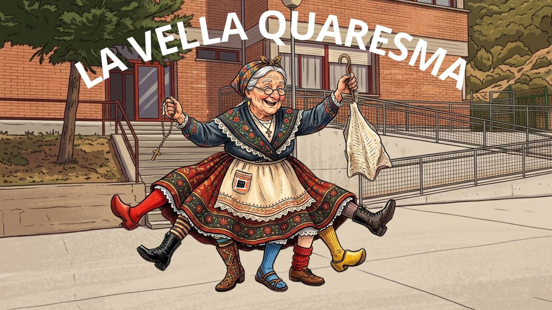 Aquesta setmana hem rebut una visita molt especial a la nostra escola: la Vella Quaresma! Amb les seves set cames, la seva faldilla llarga, el bacallà a una mà i el rosari a l’altra, ja s’ha instal·lat al nostre pati per acompanyar-nos durant les pròximes setmanes.
