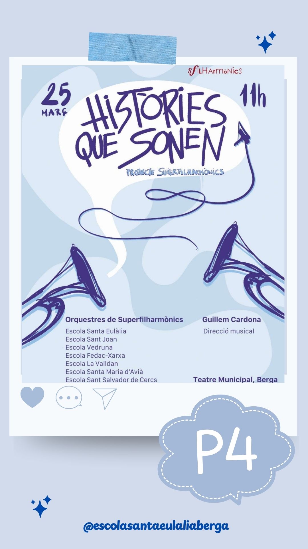 El passat 25 de març va tenir lloc al Teatre Municipal de Berga el concert dels Superfilharmònics de P4 amb l’obra Històries que sonen dirigida per Guillem Cardona. Un espectacle musical on a través d’un avió de paper els i les alumnes ens van explicar diferents històries creades integrament per ells i elles. Cada grup […]