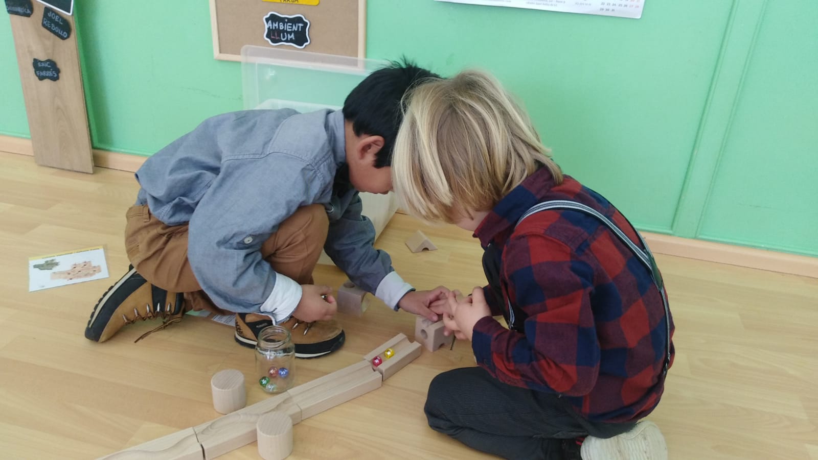 Els nens i nens de l’escola estrenem el material nou que ens ha regalat l’Ampa.