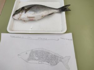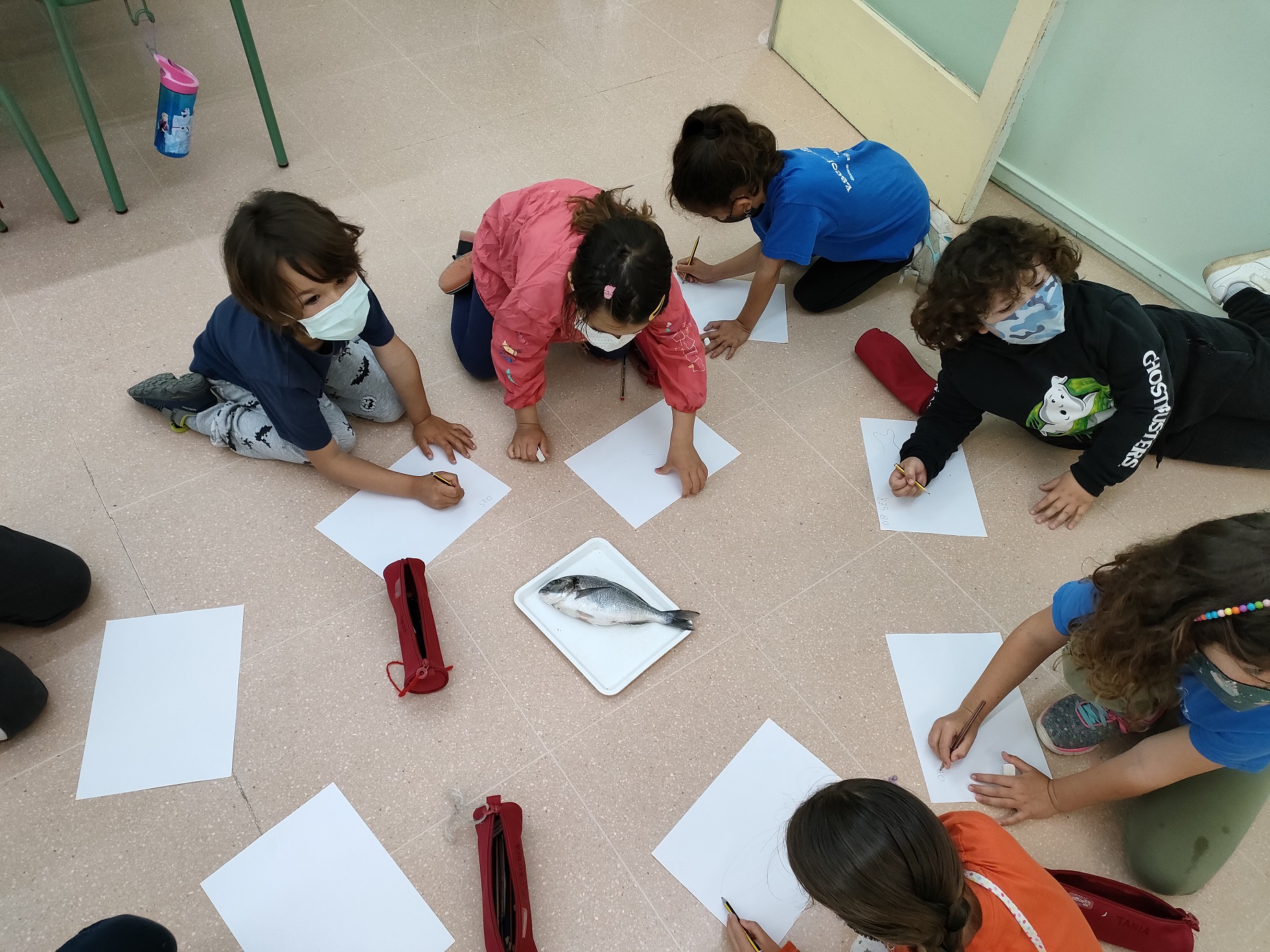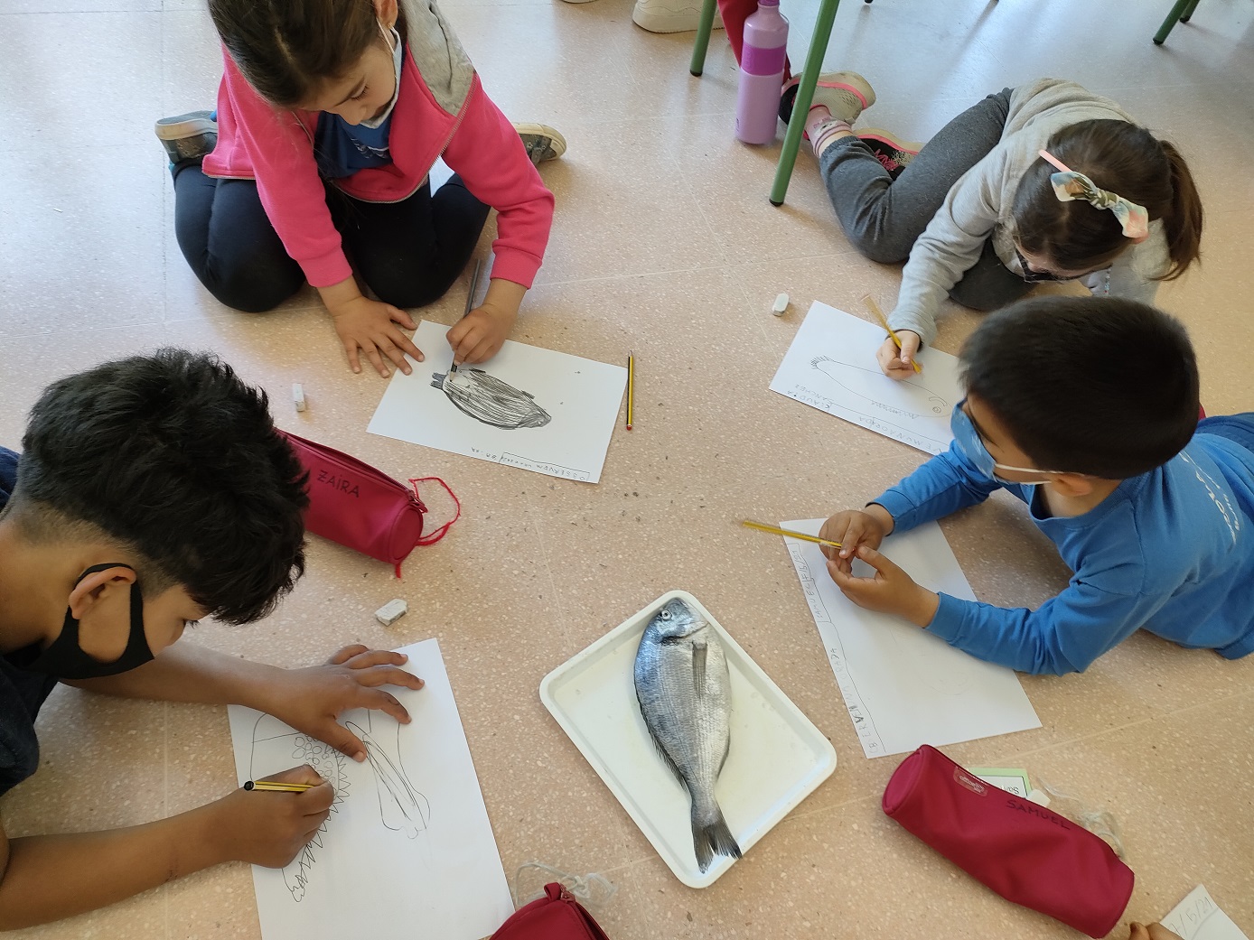La majoria van gaudir molt de l’activitat i entre tots es van engrescar a separar les escates de les tres orades i posar-les en un pot. També es van sorprendre al descobrir com respiren els peixos i van poder tocar i moure les seves brànquies. Va ser una experiència molt divertida. Per acabar van dibuixar l’orada al natural amb tots els detalls.