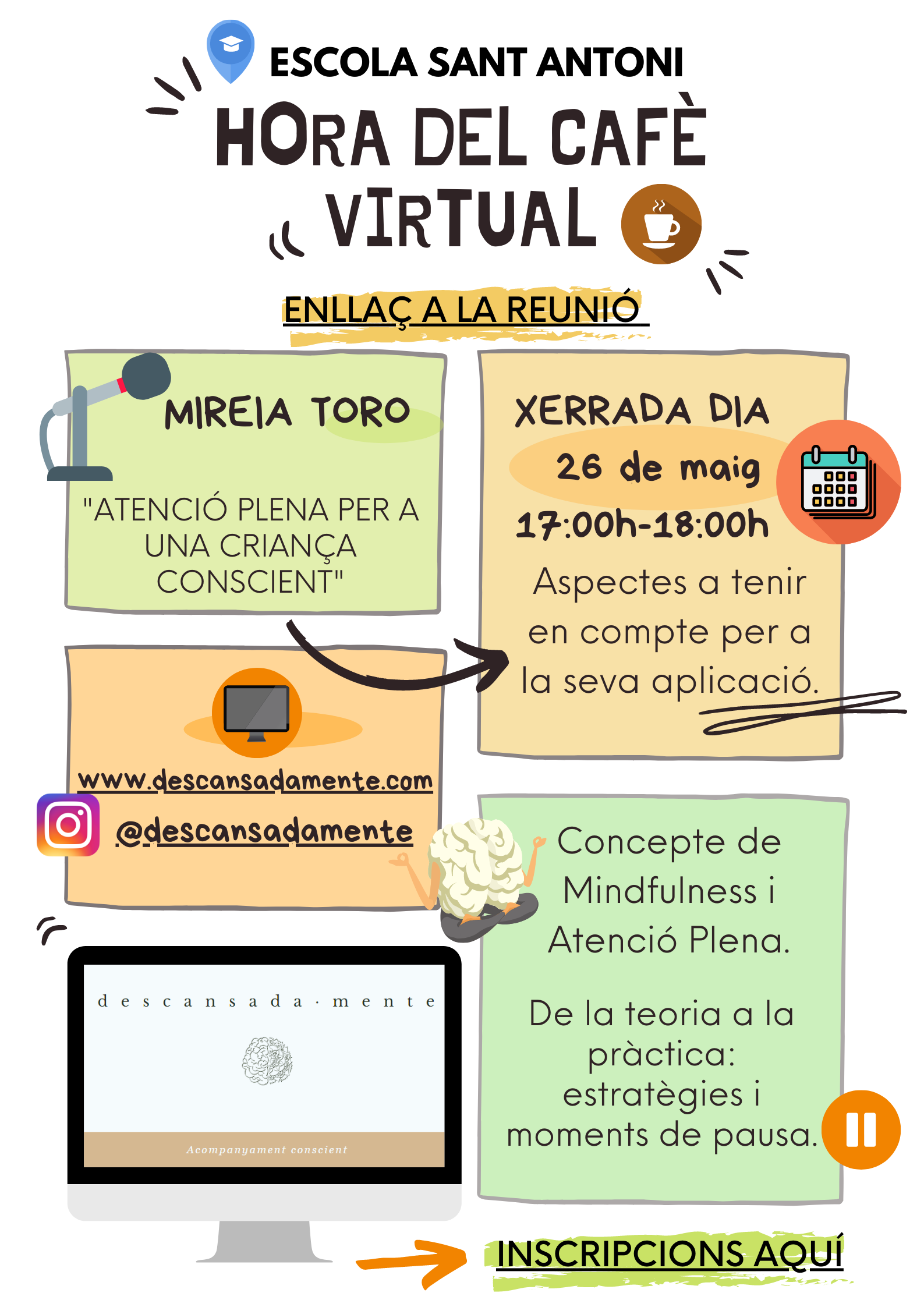 HORA DEL CAFÈ VIRTUAL – 26 DE MAIG 17H Feu un comentari / Per admin / 20 de maig de 2021 / Escola Portada