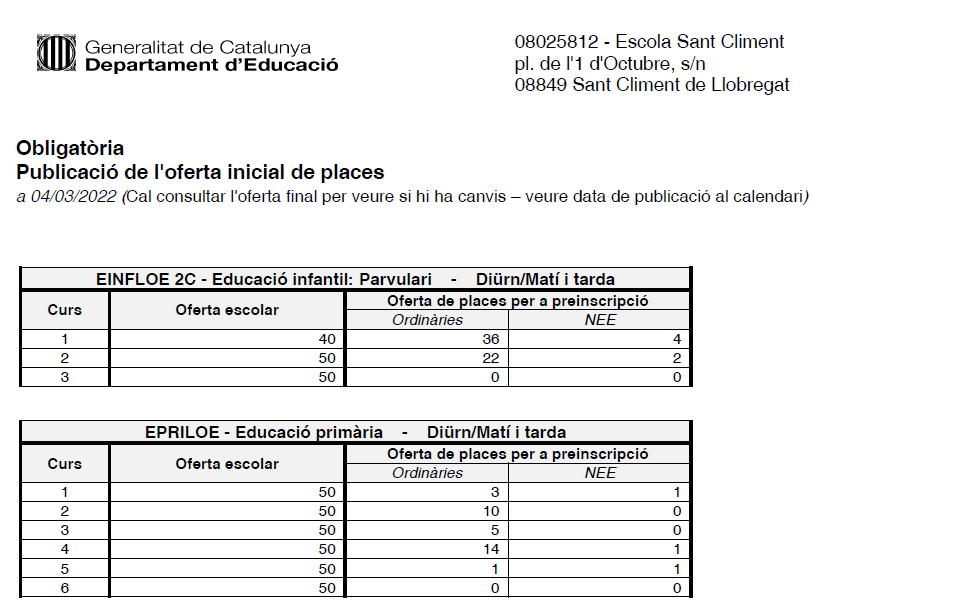 21/04/22Avui 21 d’abril de 2022 ha sortit la llista de puntuació provisional de Preinscripció pel curs 2022-23. També la teniu disponible al plafó de l’escola.