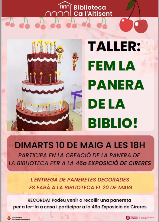Des de la biblioteca del poble ens demanen que us compartim les activitats que realitzaran les properes setmanes relacionades amb la 46a Exposició de Cireres de Sant Climent.