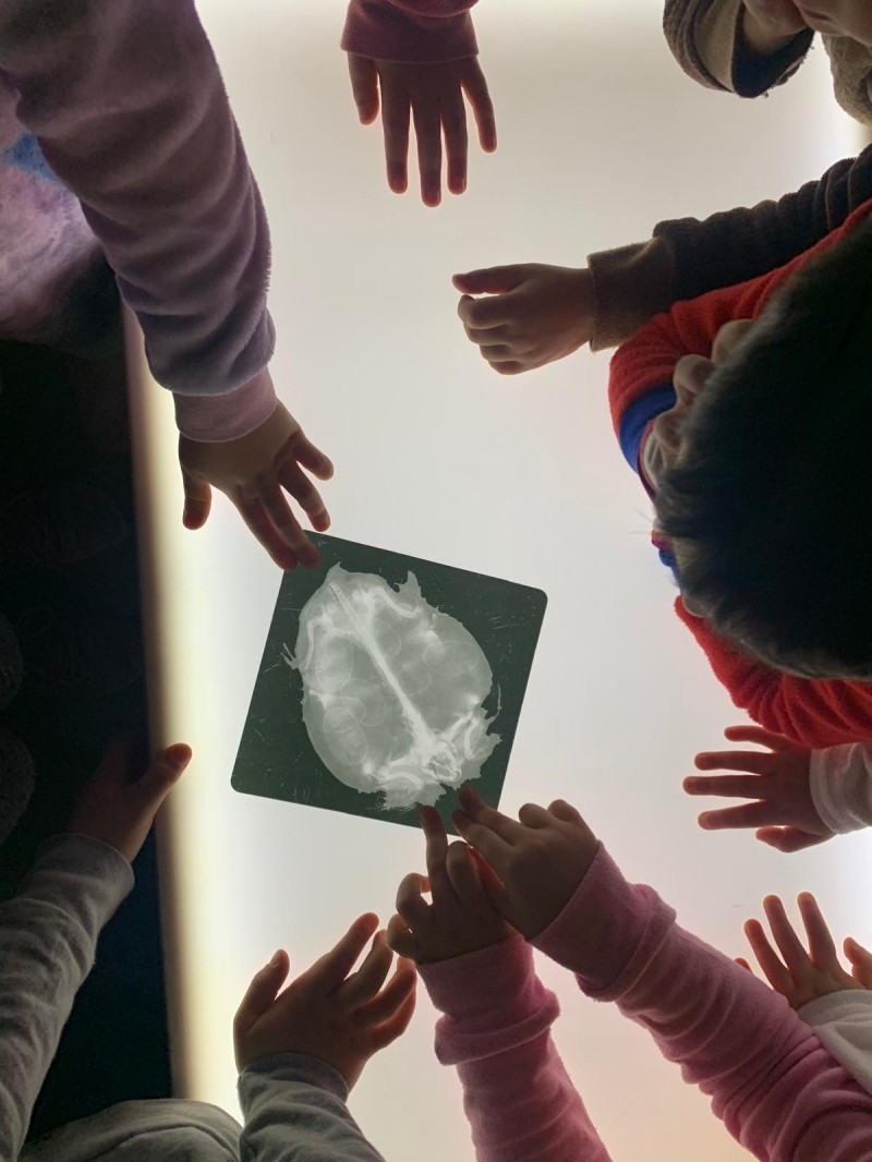 Des que vam obrir aquest espai, ja fa tres cursos, els materials que hi tenim continuen oferint-nos oportunitats d’exploració i descobertes inesperades. Avui, per exemple, tot observant amb atenció la radiografia d’una tortuga —un material que ens acompanya des dels inicis del LAB— els infants s’han adonat d’un detall que fins ara no havien captat.