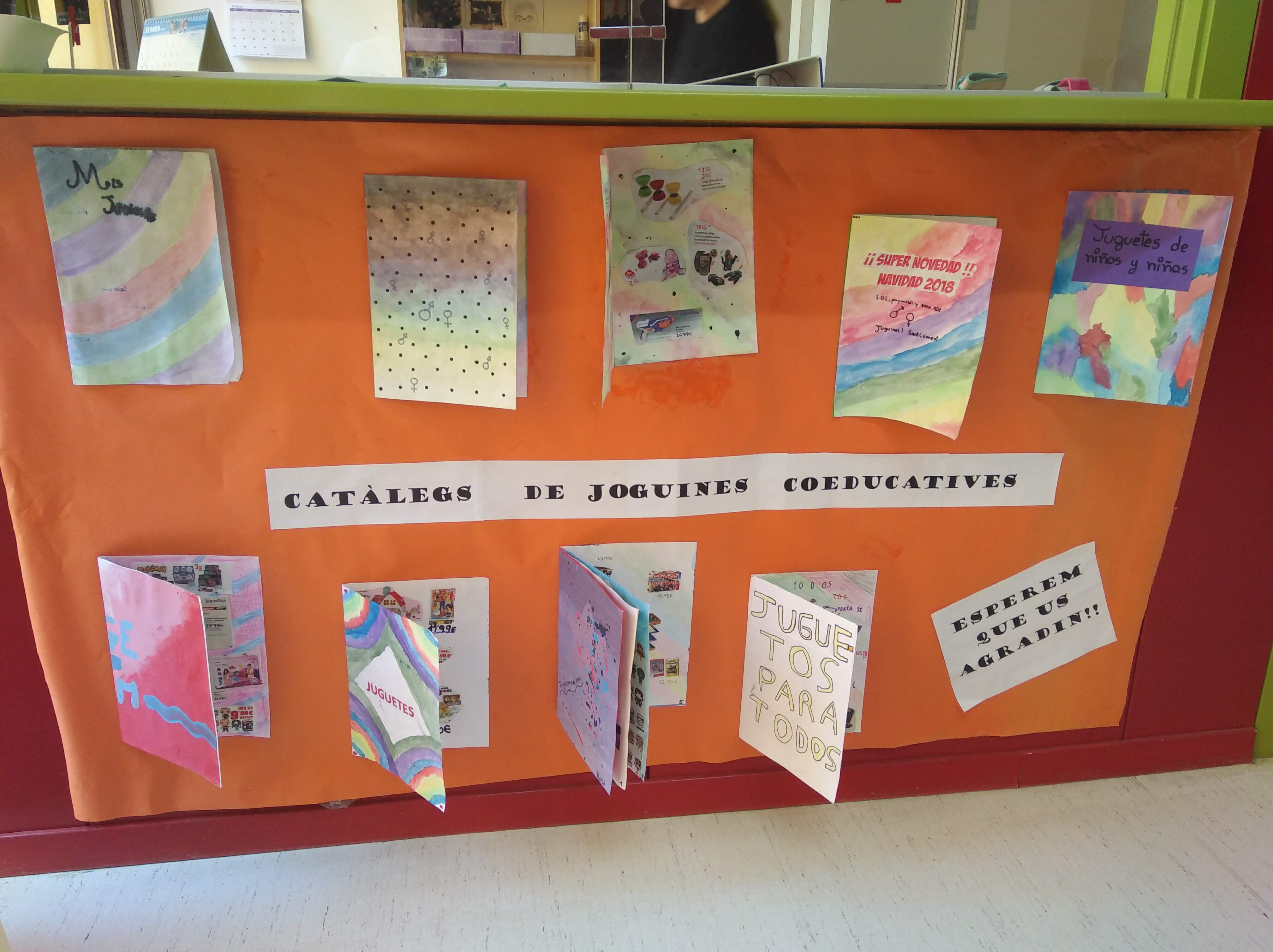 Arrel d’observar diferents anuncis televisius i catàlegs de joguines, vam veure que aquests estan molt condicionats pels colors, i amb alguns missatges sexistes. És per això, que vam fer els nostres propis catàlegs no sexistes amb l’objectiu de reduir la desigualtat de gènere. Hem tingut en compte els colors, les joguines que hem posat, etc.
