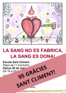 Des de l’Escola Sant Climent, i en especial els infants de 5è, volem donar les gràcies a totes les persones del poble que ahir a la tarda vau venir a donar sang a la nostra escola.