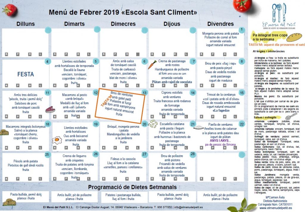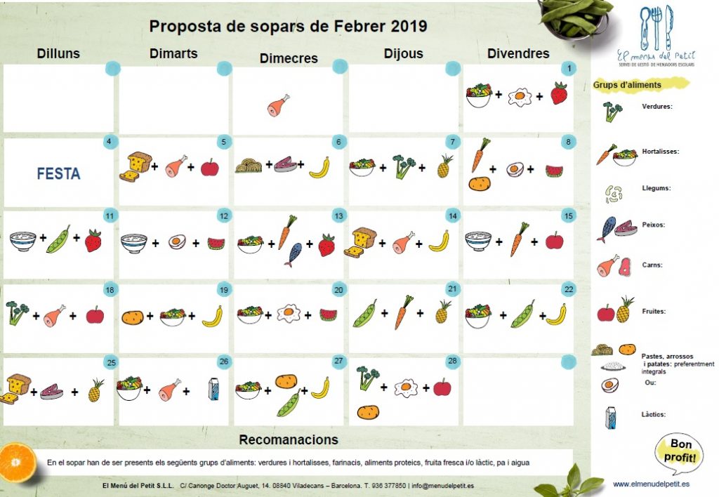 Bon dia, us adjuntem el menú pel mes de febrer.