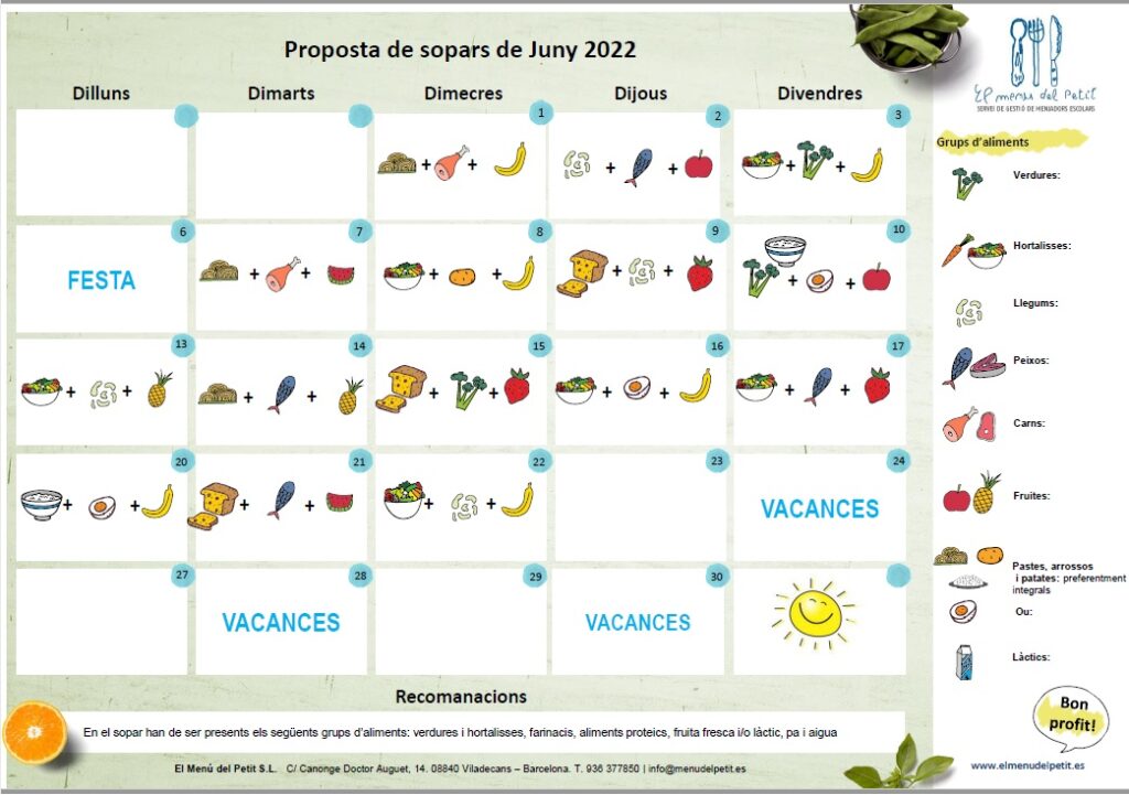 Aquí teniu el menú pel mes de juny: