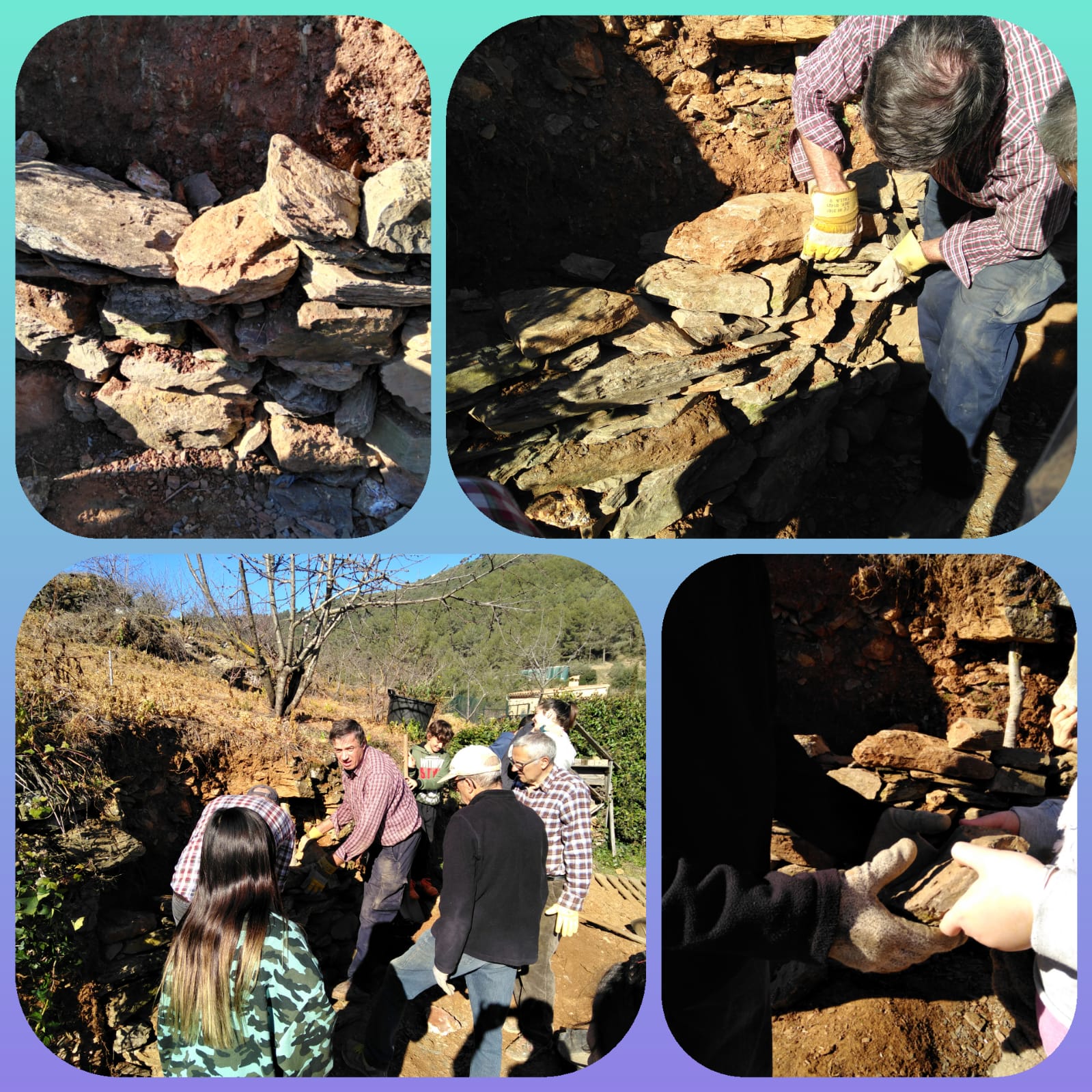 Finalment, va ser amb ells que vam compartir la jornada del passat divendres, tot carregant rocs, trencant-los, col·locant-los, … per finalment reconstruir el nostre marge!!