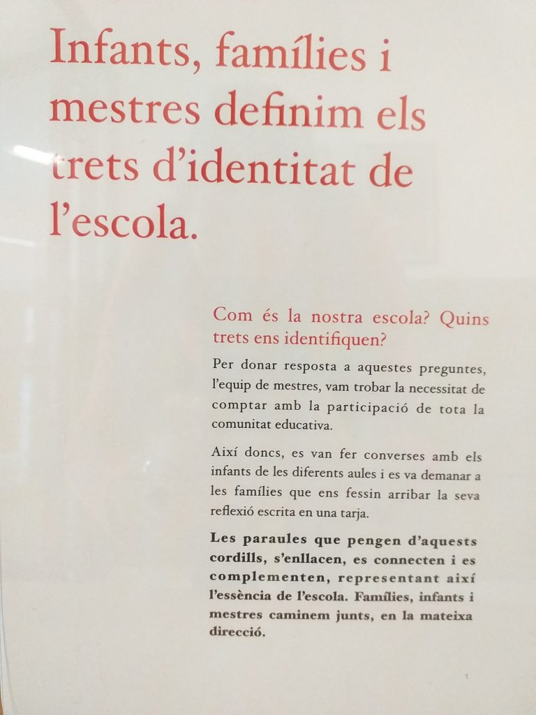 D’aquest procés de reflexió compartit van sorgir un seguit d’idees i conceptes que ens fan adonar que tota la comunitat escolar identifiquem els mateixos trets d’identitat de la nostra escola: