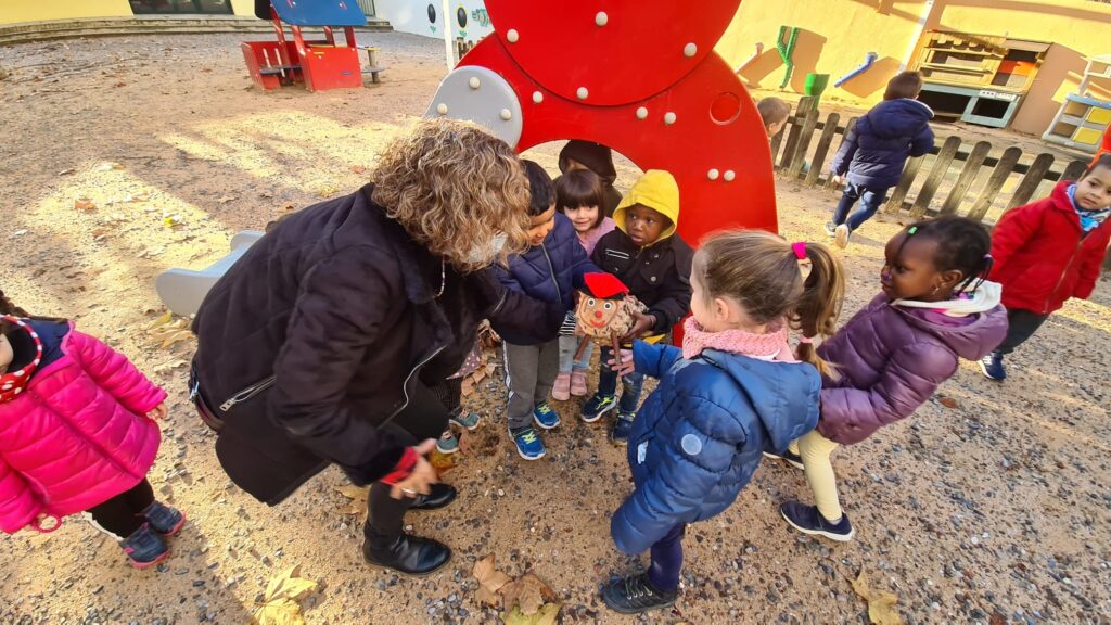 Avui ha arribat el Tió a l’escola. Els alumnes de P3, P4 i P5 hem sortit al pati a buscar-lo. Mireu que bé ens ho hem passat!
