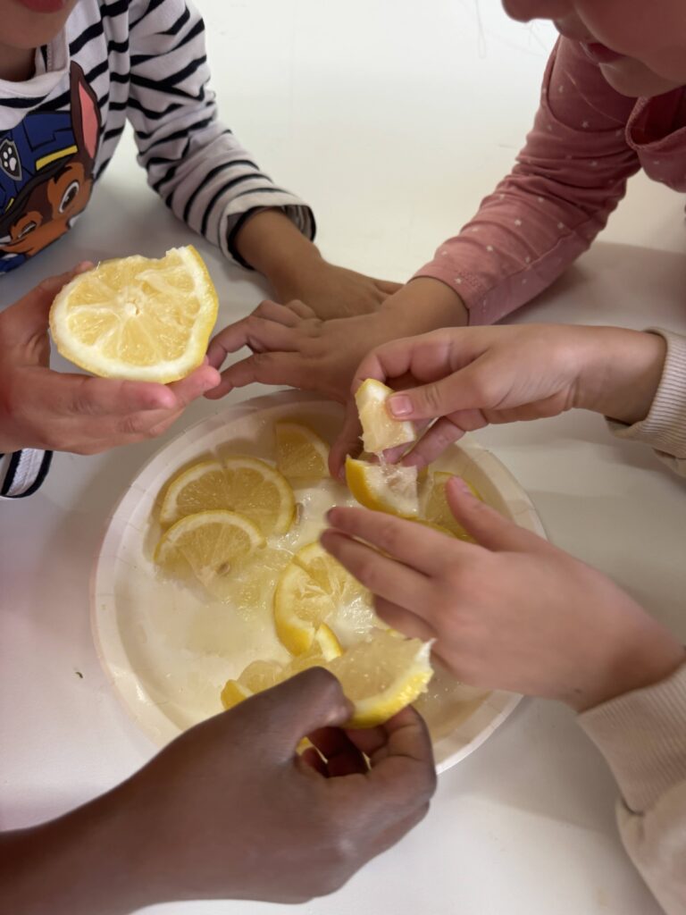 Aquesta setmana, les nenes i els nens de primer hem experimentat amb el gust. Hem descobert que el sentit del gust es troba a la llengua, on tenim les papil·les gustatives. Les papil·les estan per tota la llengua, però notem els sabors de manera més intensa en zones concretes de la llengua. Hem tastat molts