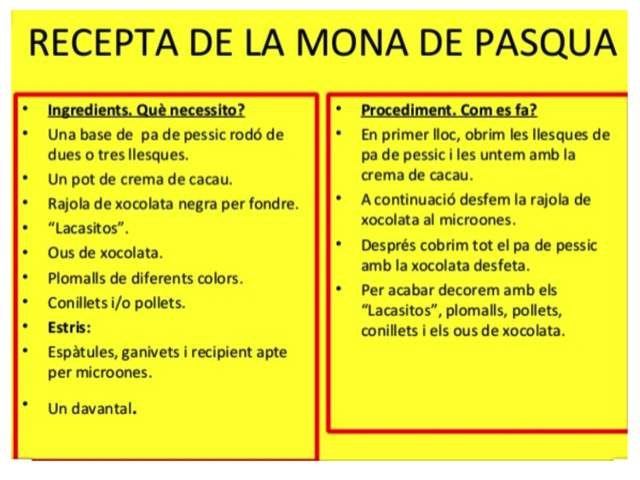 Avui us fem arribar l’última proposta abans de Setmana Santa. Ens agradaria que aquestes vacances feu LA MONA amb l’ajuda de la vostra família!!!