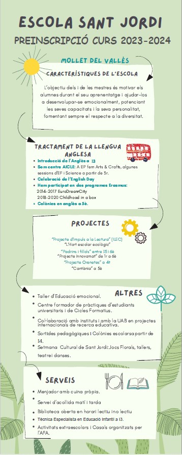 Us adjuntem també informació sobre la preinscripció pel curs 2023-2024: