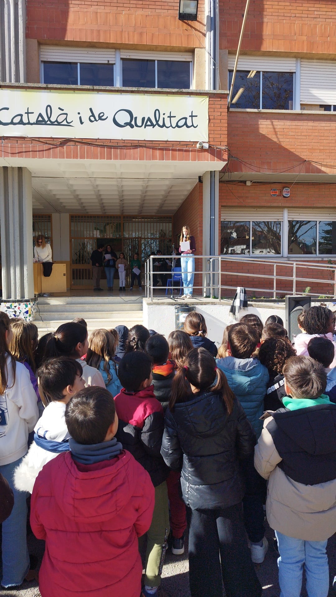 Tot l’alumnat del centre ens hem reunit i hem llegit un manifest per la pau, redactat col·lectivament per tot l’alumnat de l’escola, donant veu als seus pensaments, desitjos i compromisos per fer d’aquest món un lloc millor.