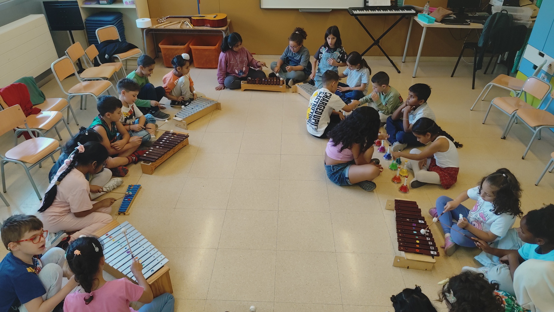 Després, hem interpretat la melodia amb els instruments de placa Orff i les campanes de colors. Per fer-ho, ha estat important estar molt atents a les entrades marcades pel piano.