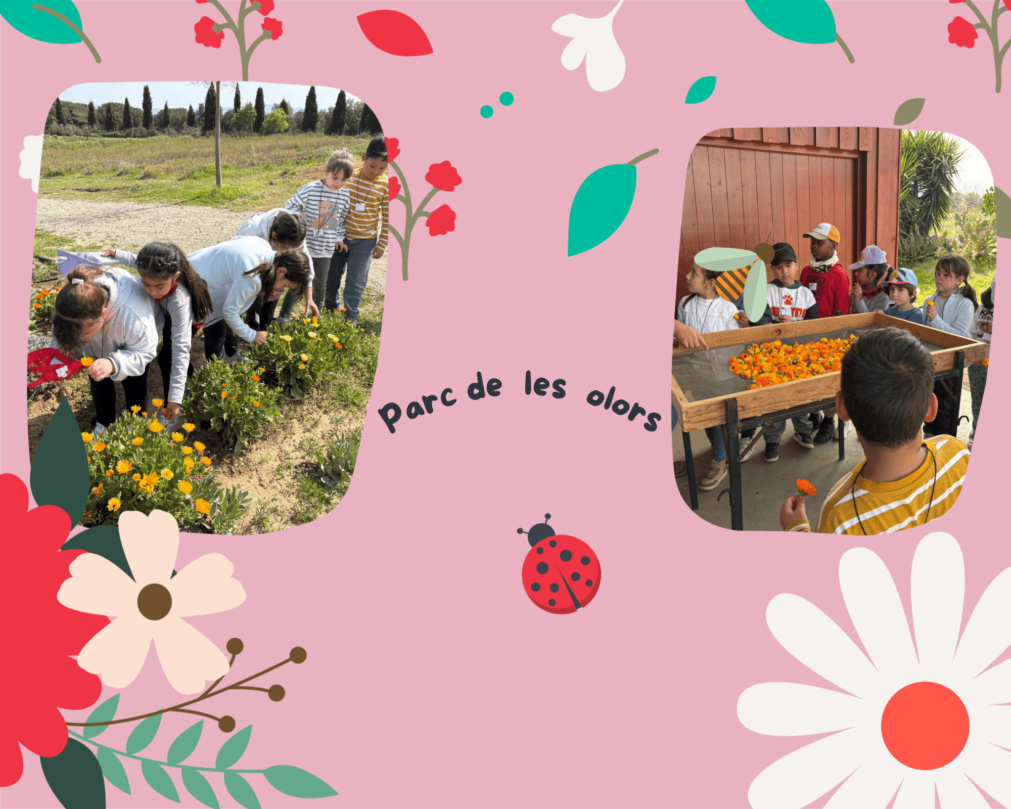 També hem passejat pel parc i hem observat flors i petits insectes. Hem après que les plantes tenen diferents olors i que algunes s’utilitzen per cuinar o fer medicines.