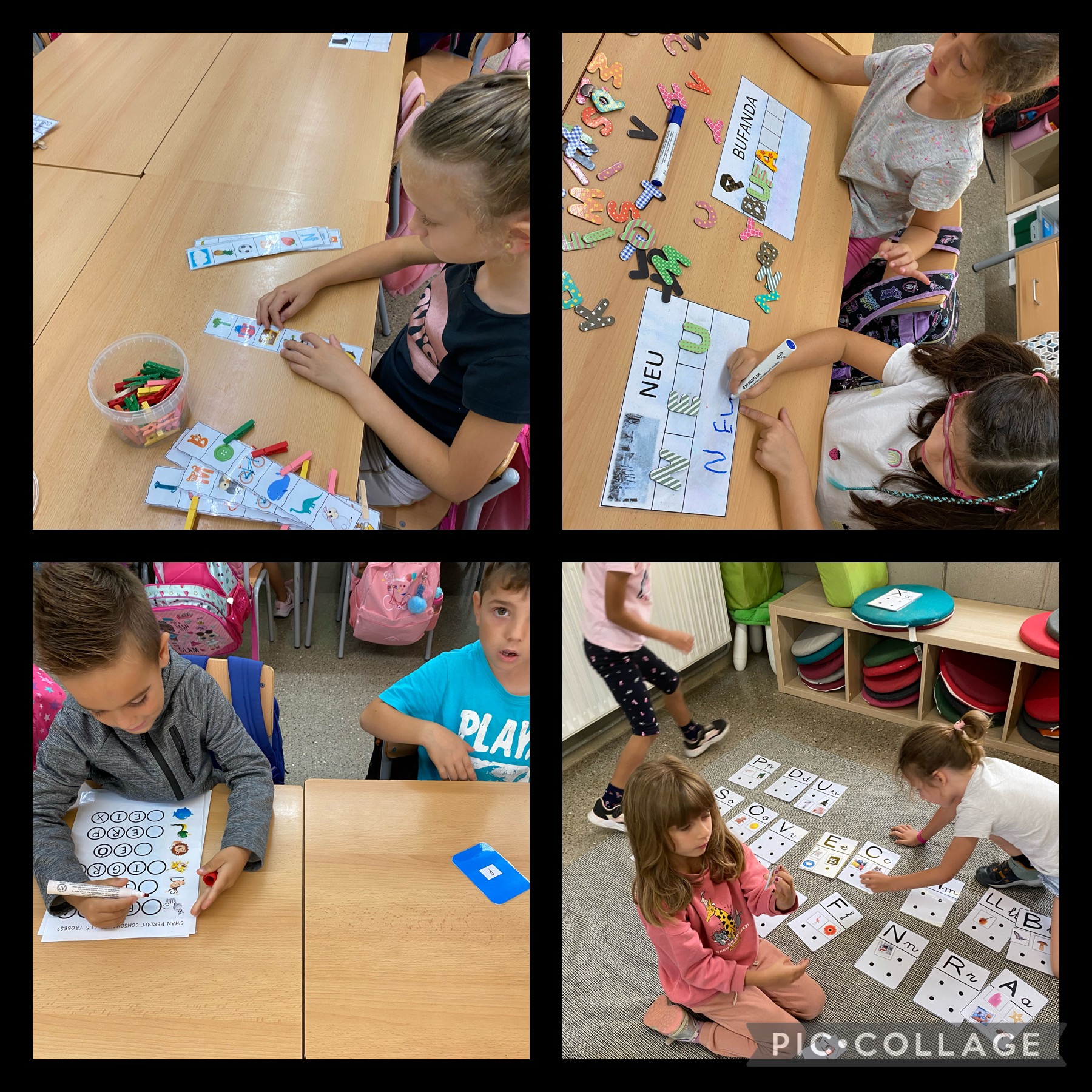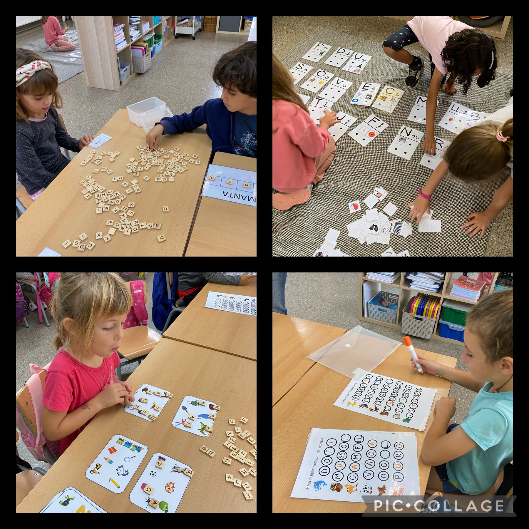 A primer ens iniciem en la lectoescriptura. Tenim diferents propostes per treballar la consciència fonolòcica, la conscència sil·làbica, la lectura de paraules, confegir paraules, les rimes,… Cadascú realitza la seva proposta adaptada al seu moment evolutiu.