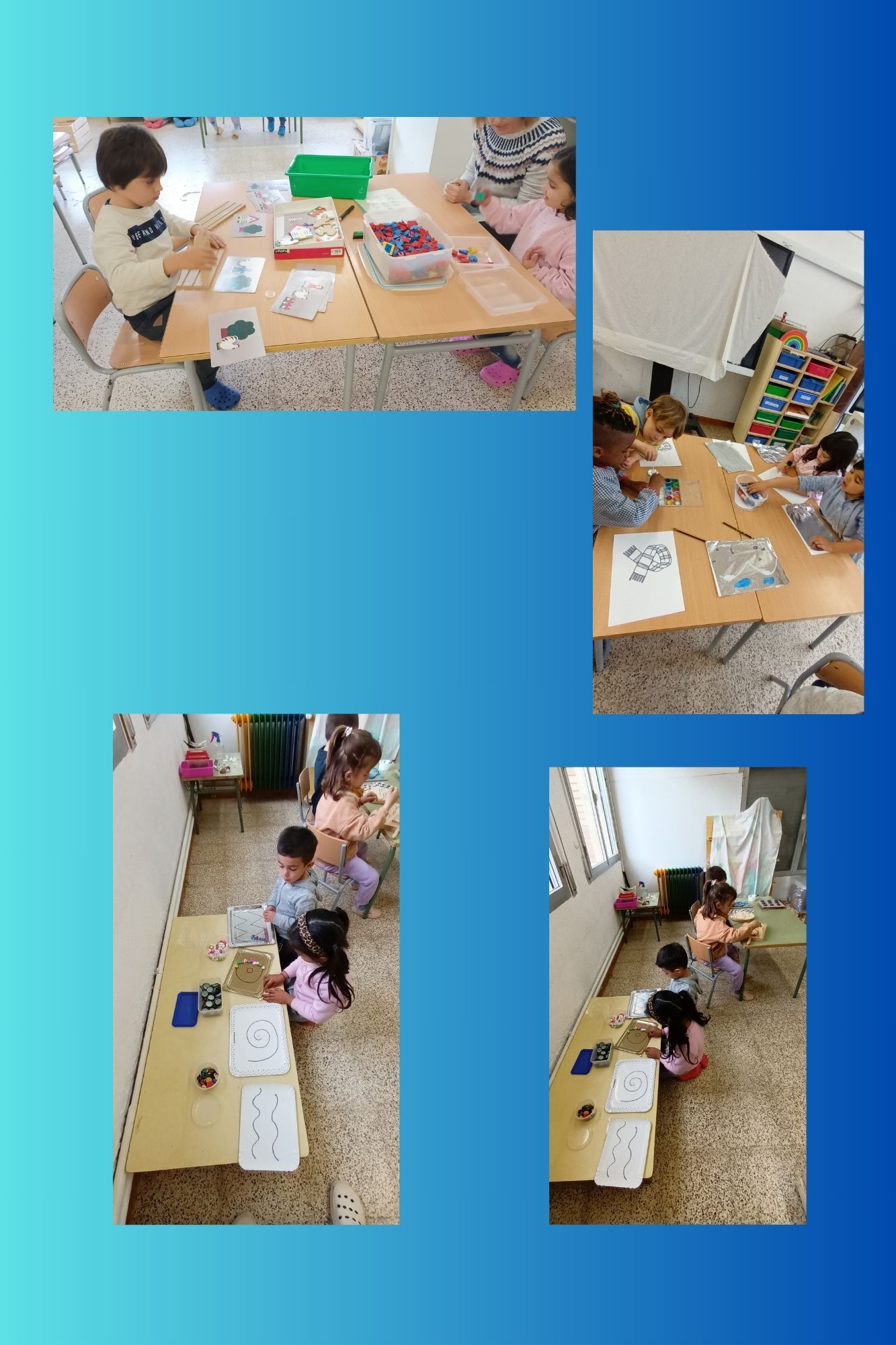 Els nens i les nenes d’EI 4 fem propostes els dimarts i els divendres al matí. En petit grup fem activitats de llengua, matemàtiques, psicomotricitat fina, pintura, art i construccions.