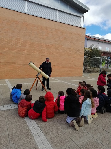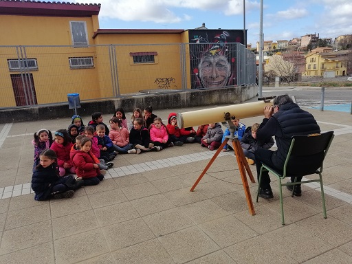 ALS ALUMNES D’EI5 ENS ENCANTA REBRE VISITES. AVUI N’HEM REBUT UNA DE BEN ESPECIAL. ENS HA VISITAT EN MIQUEL AMBLÀS, MEMBRE DE L’ASSOCIACIÓ ASTRONÒMICA D’OSONA. EL QUAL ENS HA APORTAT INFORMACIÓ PER A LES NOSTRES INVESTIGACIONS, SOBRE L’UNIVERS. I EN PARTICULAR, SOBRE EL NOSTRE PLANETA:LA TERRA, EL NOSTRE SATÈL.LIT: LA LLUNA; I L’ESTRELLA: EL SOL.