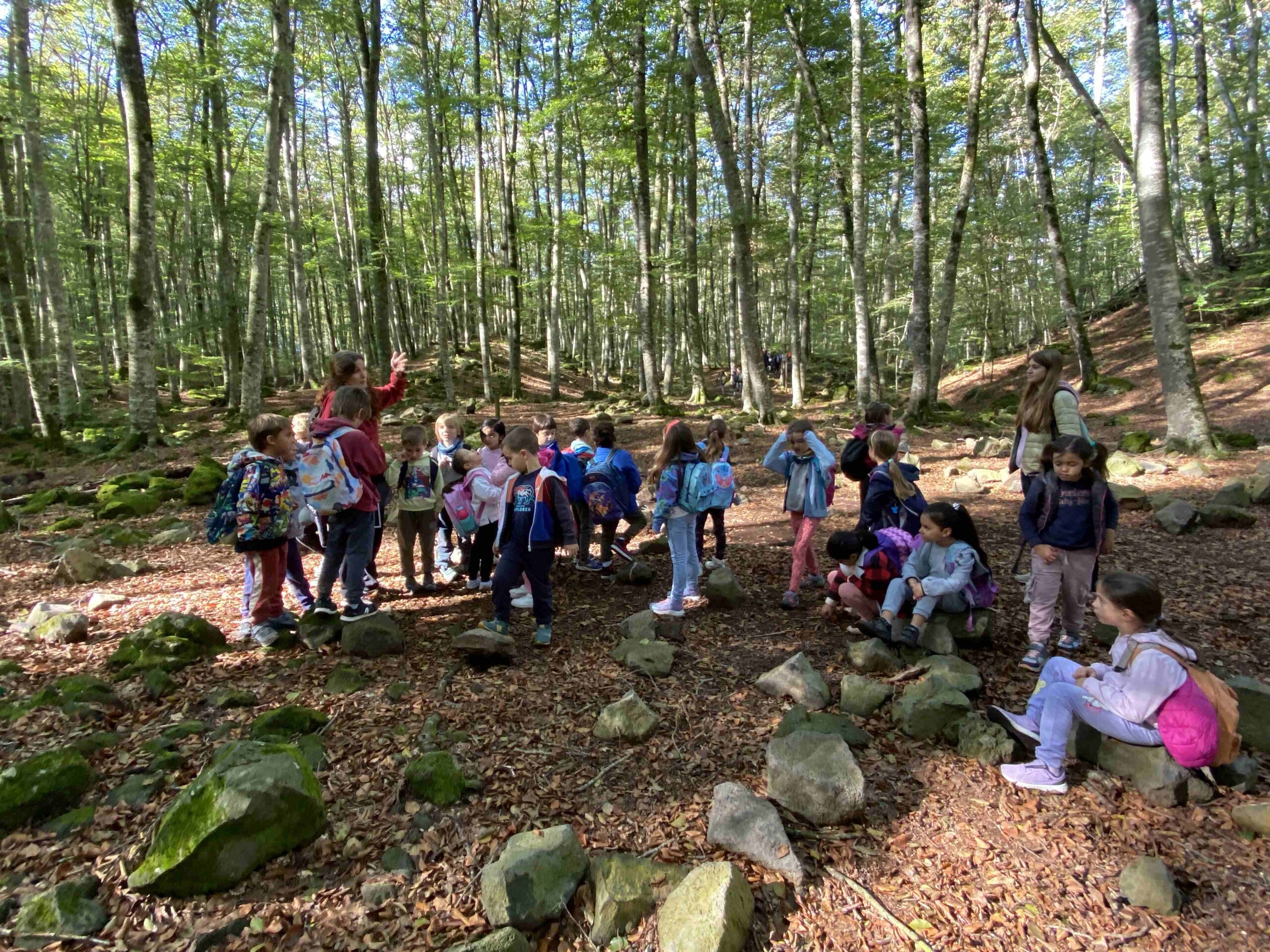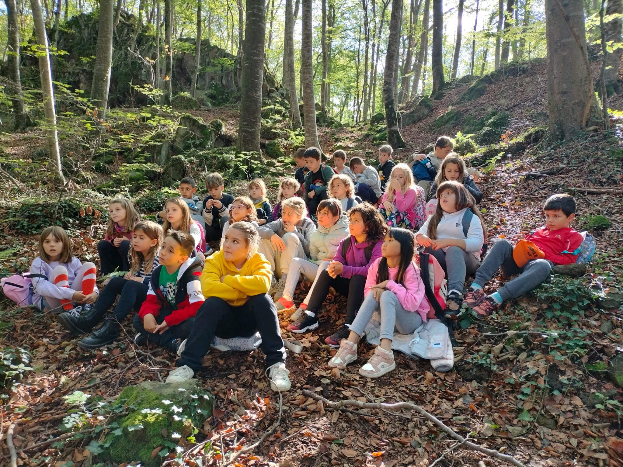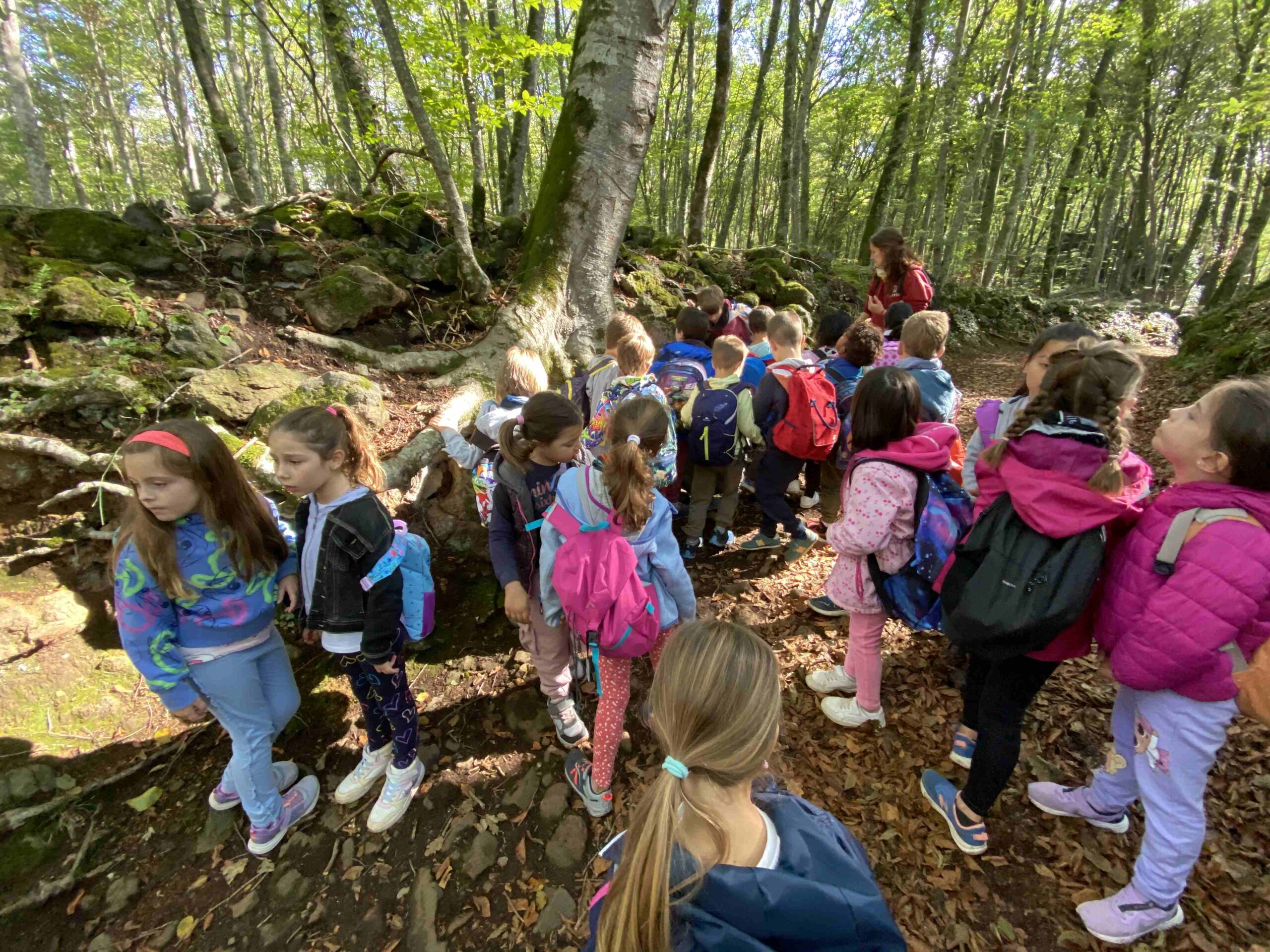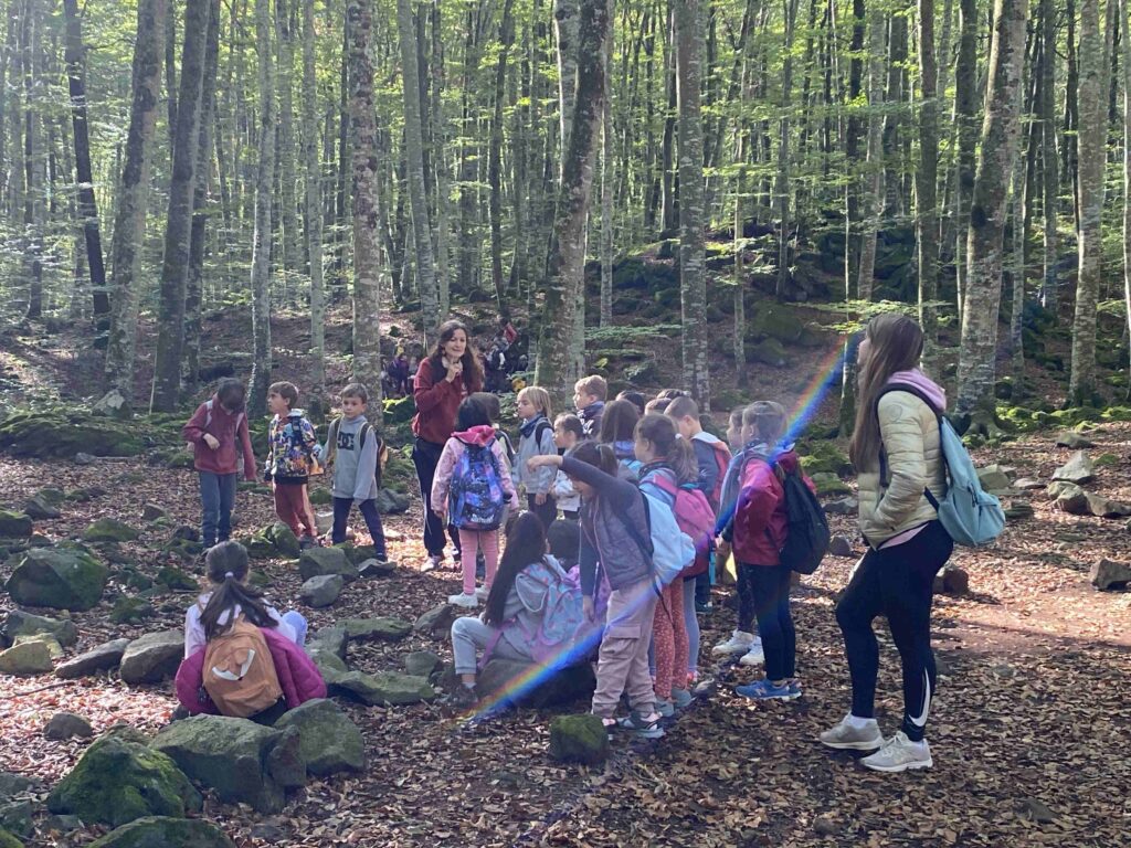 Tot i que el dia no pintava massa bé de bon matí finalment vam poder gaudir de la natura. Una vegada a la Fageda ens van acompanyar tres guies de la zona per explicar-nos curiositats d’aquest bosc tan especial. Hem descobert que és un bosc nascut sobre una zona volcànica i que té una gran riquesa en flora i fauna.