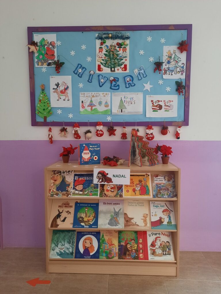 Les dites ens recorden que el fred, la boira, les gelades i la neu segurament seran presents en els propers dies. Per tal de guarnir l’expositor de davant de la nostra biblioteca vam demanar als alumnes que portessin contes, dibuixos, manualitats amb la temàtica de l’hivern o Nadal.