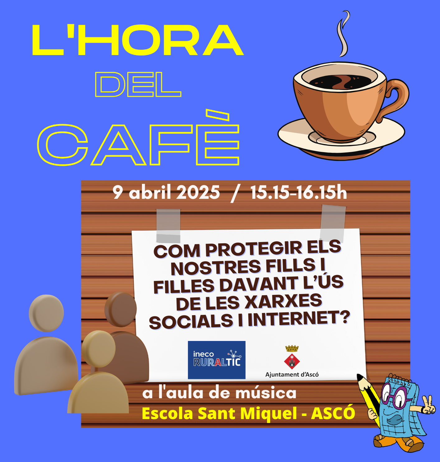 Aquest proper dimecres tindrem una nova sessió de L’Hora del Cafè, en què un nòmada digital d’INECO RuralTIC ens explicarà com podem protegir els nostres fills i filles davant l’ús de les xarxes socials i Internet.