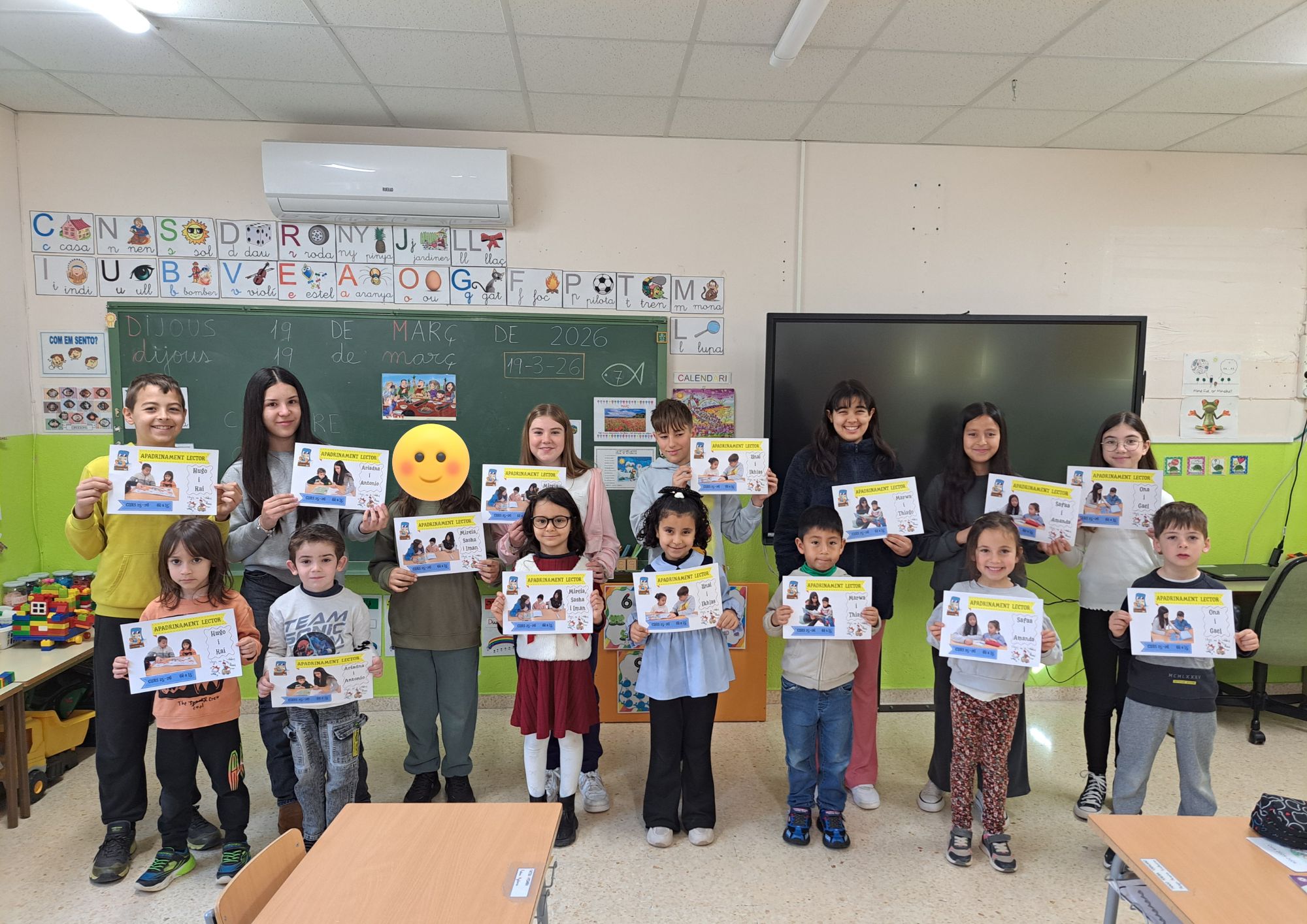 CLOENDA APADRINAMENT LECTOR Feu un comentari / Per escola / 24 de març de 2026 / Biblioteca Portada / Biblioteca, Biblioteca escolar, Curs 2025-26, Seminari biblioteques Ribera d'Ebre Dijous 19 de març vam fer la cloenda de l’activitat de d’Apadrinament Lector que hem estat fent durant aquest 2n trimestre del curs. Vam lliurar diplomes a padrines, padrins, filloles i fillols. Tots i totes hem gaudit molt d’aquesta activitat!!! 3r-I4 4t-I3 5è-1r 6è-I5 6è-2n