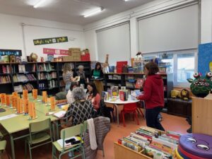 Vam parlar de les dinàmiques que portem a terme a la nostra biblioteca escolar com el Divendres Expliquem que durem a terme aquest 3r trimestre, els voluntaris/es de 6è que fan el préstec de llibres i organitzen la biblioteca cada divendres, l’apadrinament lector que hem fet durant el 2n trimestre, l’exposició dels Clàssics en Veu Alta, i els racons de contes i novetats.