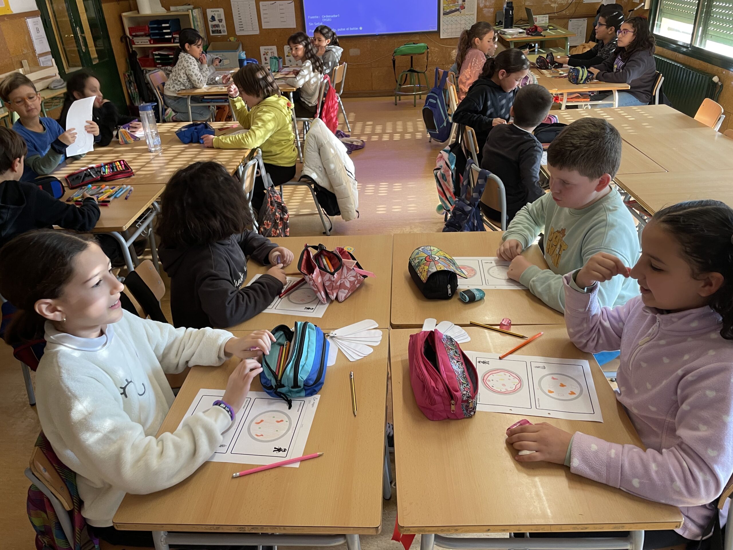 L’alumnat de la classe gaudeix molt jugant i, per poder fer l’aprenentatge més significatiu, la setmana passada vam estar fent de “pizzeros i pizzeres“ per tal de practicar les estructures treballades a la classe i el vocabulari corresponent.