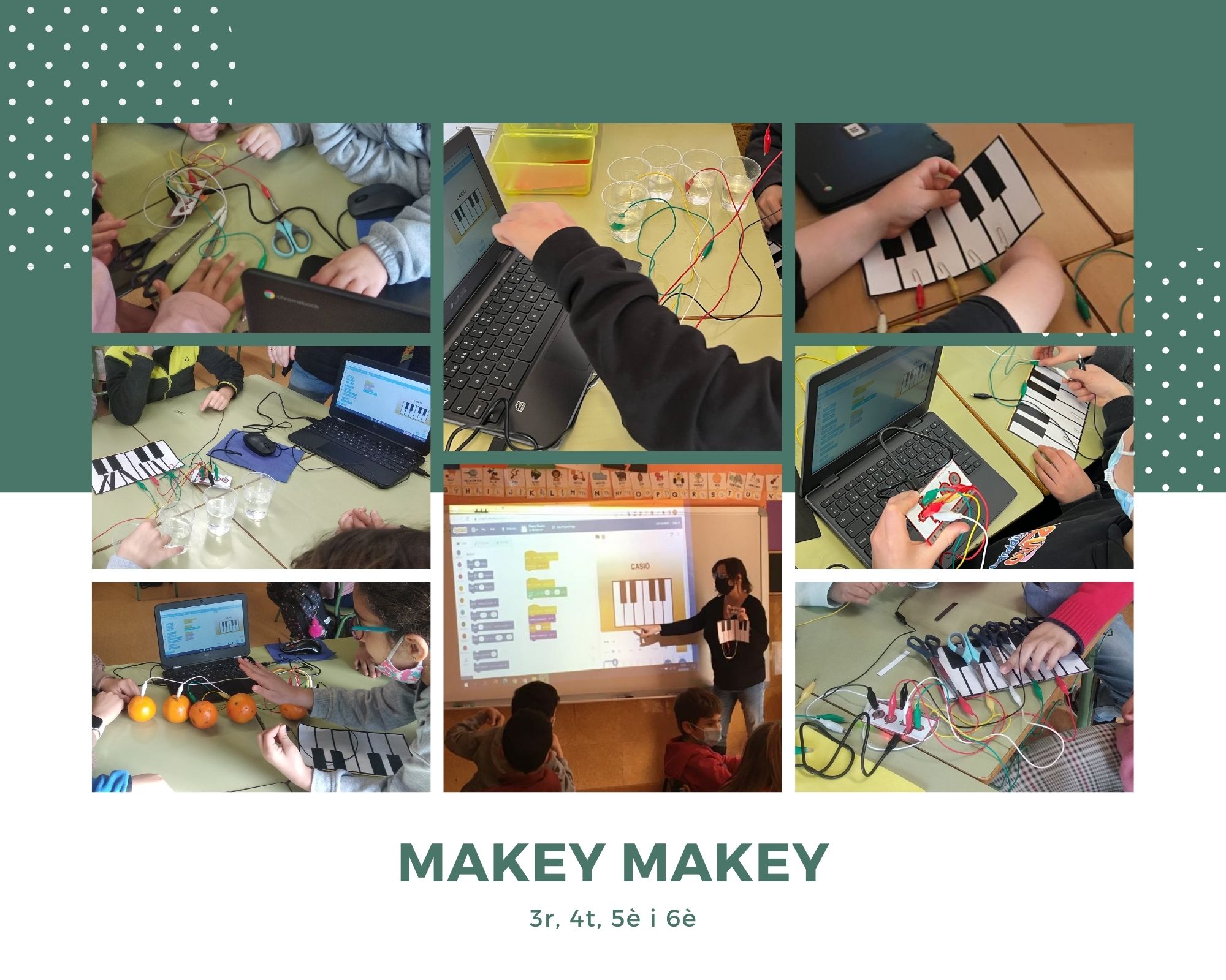 Gràcies al Makey hem experimentat quins objectes són conductors d’electricitat, hem après a connectar/programar un dispositiu/robot i també hem pogut crear una melodia.