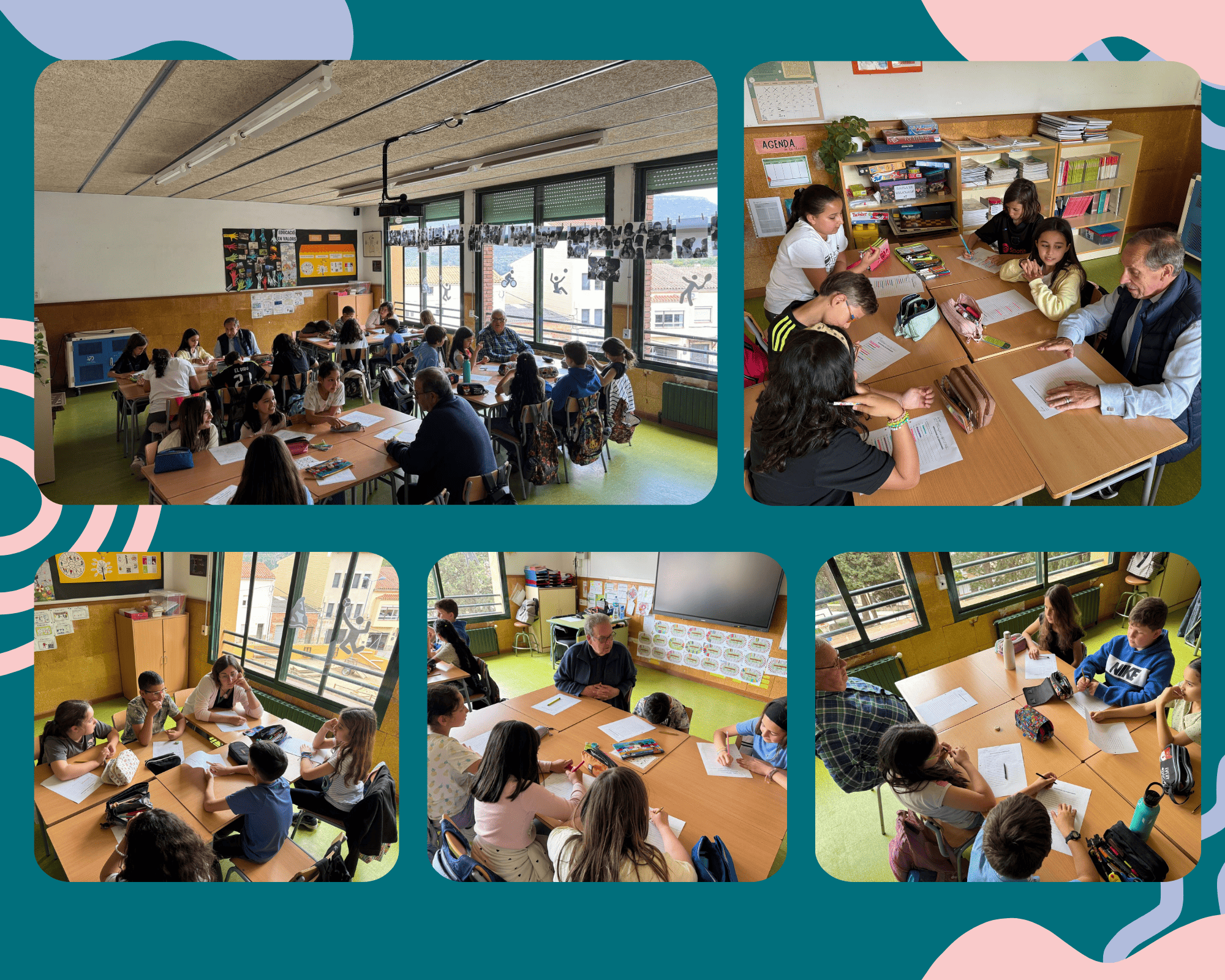 El passat dilluns a la tarda ens van venir a visitar “grandpas” del Casal d’Avis que cursen anglès al casal. Dies abans vam preparar unes preguntes per fer-los a l’aula i així poder practicar la comprensió i expressió oral en llengua estrangera. Va ser una tarda molt enriquidora en la qual vam poder-nos relacionar amb altres generacions que ens van explicar un munt de coses fantàstiques a banda de respondre les nostres preguntes. Nosaltres també en vam respondre, ja que els avis també ens en van fer.