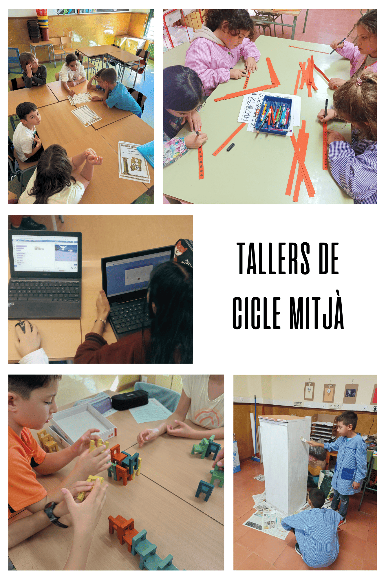 Aquest curs s’han organitzat tallers per a treballar l’expressió artística i plàstica, la robòtica, les matemàtiques i el laboratori.
