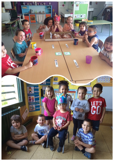Les baldufes celebrem el primer aniversari del curs, el d’en Gerard. Li cantem la cançó de “Per molts anys” i li fem una corona de color blau, tot i que no l’hi agraden gaire les festes, ens ho hem passat molt bé.