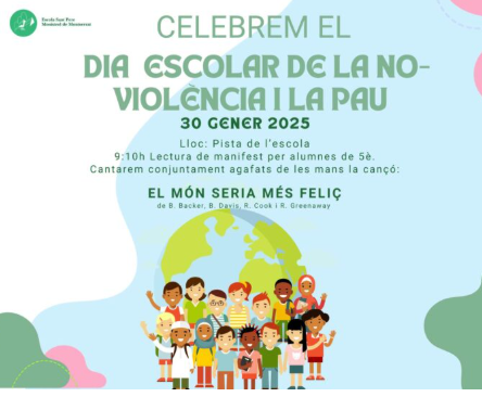 Benvolgudes famílies! Us convidem a la celebració del Dia Escolar de la No-Violència i la Pau. Us hi esperem! “LA PAU COMENÇA AMB UN SOMRIURE.” Teresa de Calcuta (Nobel de la Pau, 1979)
