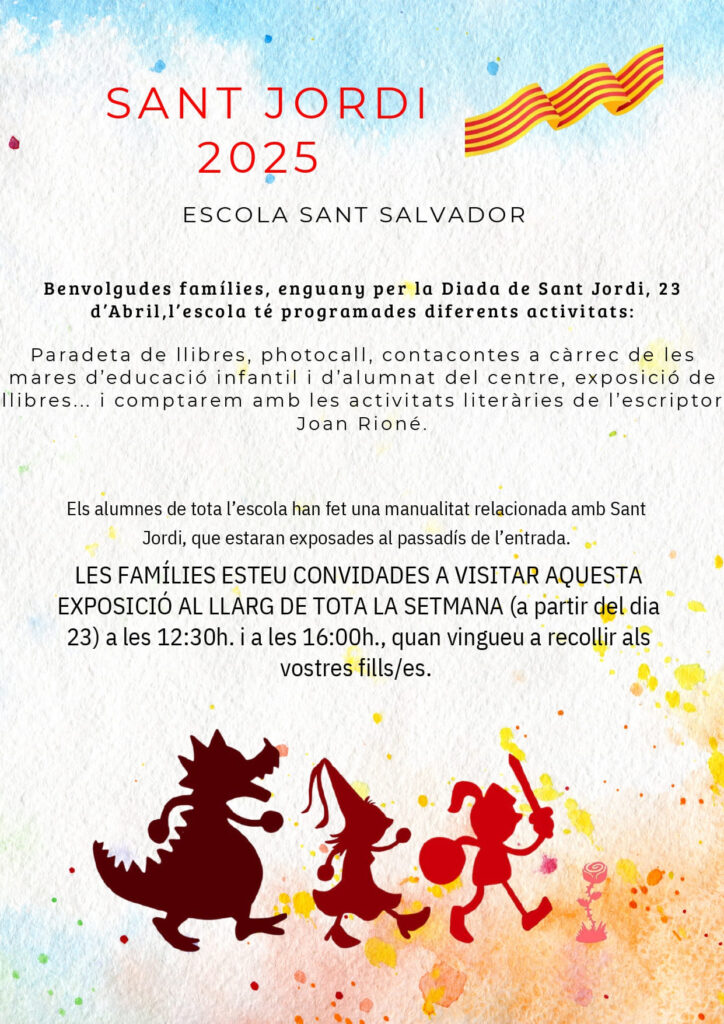 Benvolgudes famílies, Enguany per la Diada de Sant Jordi, 23 d’Abril, l’escola té programades diferents activitats Paradeta de llibres, photocall,