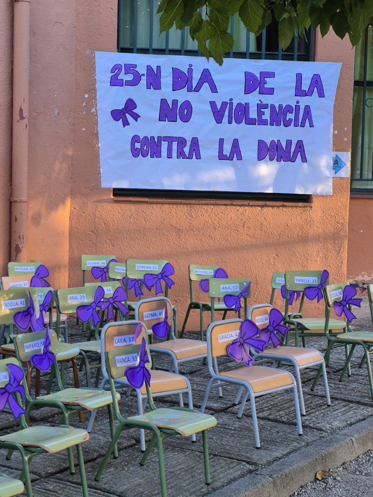 A la tarda, tota la comunitat educativa s’ha reunit al pati per participar en un acte conjunt. S’hi ha llegit un parlament que ens ha convidat a pensar i a prendre consciència, i tot seguit hem fet un minut de silenci que ens ha permès reflexionar i pensar sobre la importància de continuar treballant per una societat lliure de violències.
