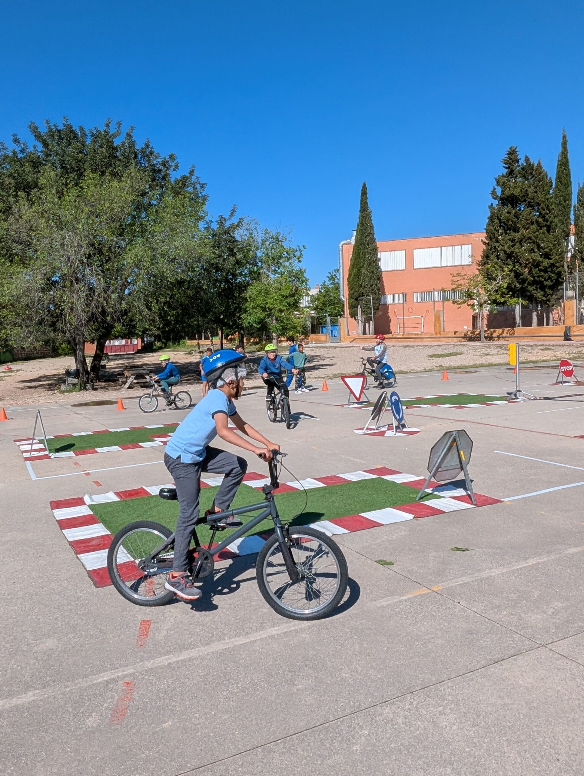 Gràcies al Servei Català de Trànsit han fet un circuit amb bicicleta, on han pogut posar en pràctica diferents senyalitzacions i les principals normes per anar en bici pel barri amb seguretat.