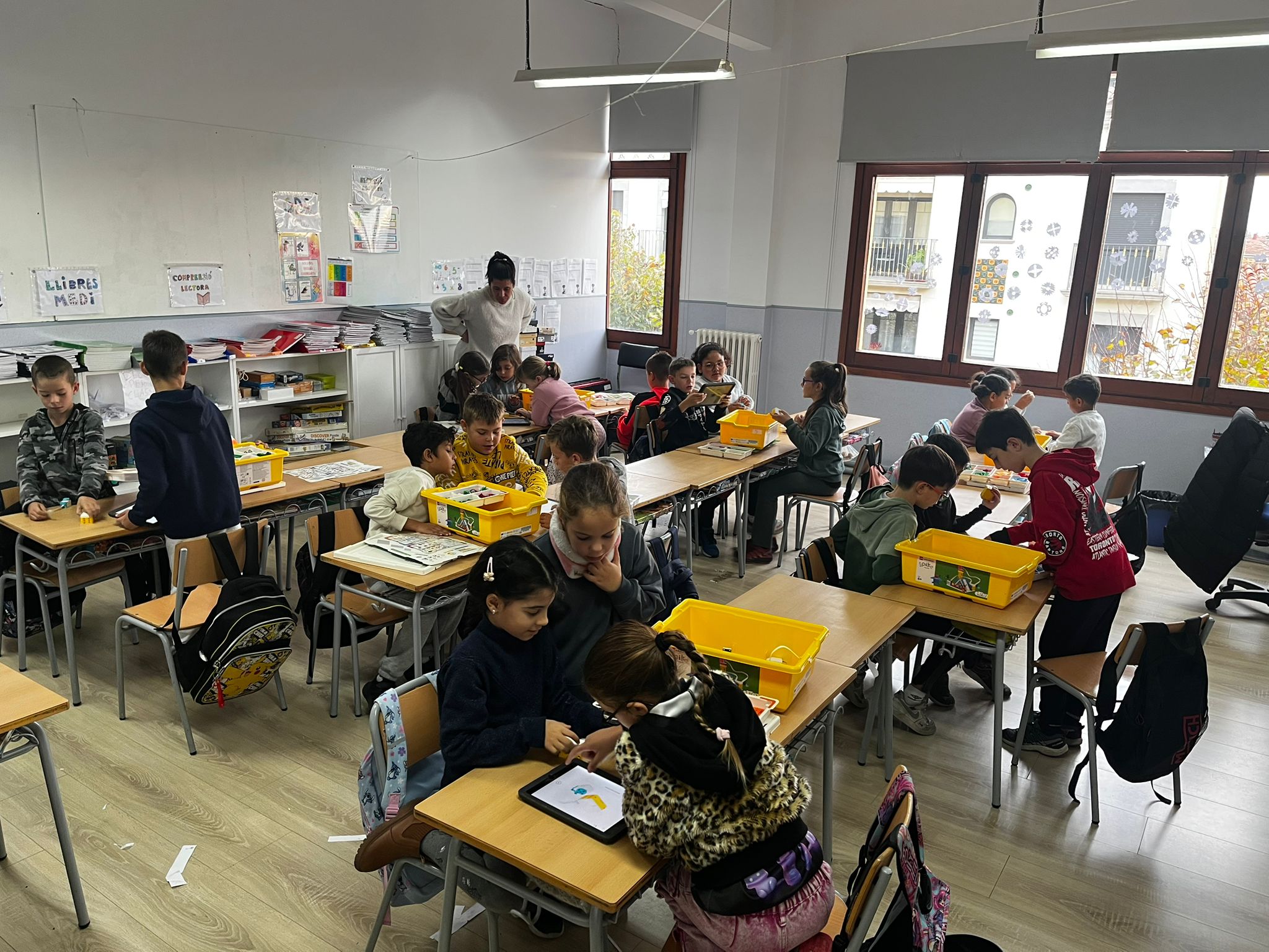 Aquesta setmana, l’alumnat de 3r ha començat a treballar amb LEGO Spike Essential, un material de robòtica educativa pensat per fomentar el pensament computacional, la creativitat i el treball en equip d’una manera molt vivencial i motivadora.