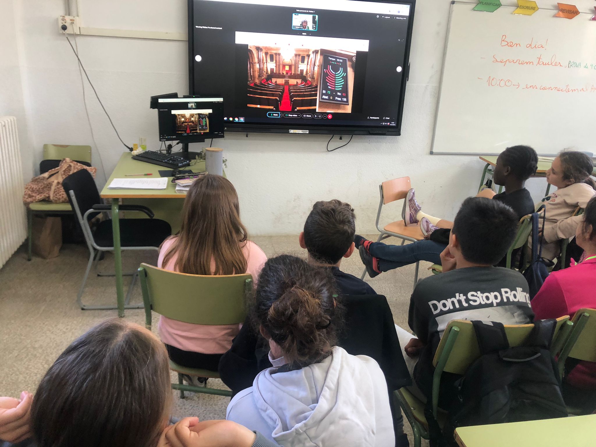 Relacionat amb aquesta situació d’aprenentatge hem fet una visita virtual al Parlament, on ens han explicat una mica més el funcionament d’aquest. Hem descobert què fan els polítics a l’hemicicle i com voten les lleis, sabíeu que ho fan a través d’uns botons que tenen davant? Ha estat una visita molt interessant i profitosa.