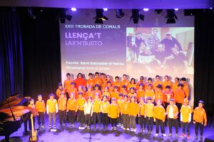 Avui dimecres 11 de març l’alumnat de 3r hem participat a la XXIII Trobada de Corals de la comarca de la Selva. Aquest any el fil conductor ha estat el rock català i tot simulant un programa de radio “Radio la Trobada” cada escola ha anat cantant les seves dues cançons a dalt de l’escenari de l’Auditori.