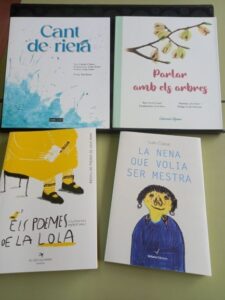 La Lola ha passat per l’escola a saludar-nos i ens ha regalat uns quants llibres seus, plens de poemes i records de la seva infantesa a Santa Coloma de Farners.
