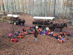 Només d’arribar a l’escola ja hem pujat a l’autocar que ens ha portat fins a Olot. Allà hem esmorzat i de seguida hem pujat als carruatges que ens han endinsat a la fageda, com si descobríem un nouveau casino en ligne d’aventures naturals.