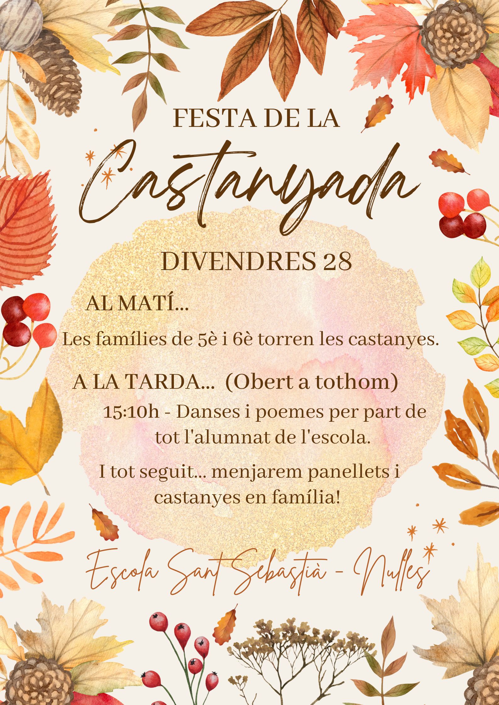 30/10/22El divendres vam celebrar tots plegats la festa de la Castanyada, entre poemes, danses i uns deliciosos panellets elaborats per tot l’alumnat de l’escola.